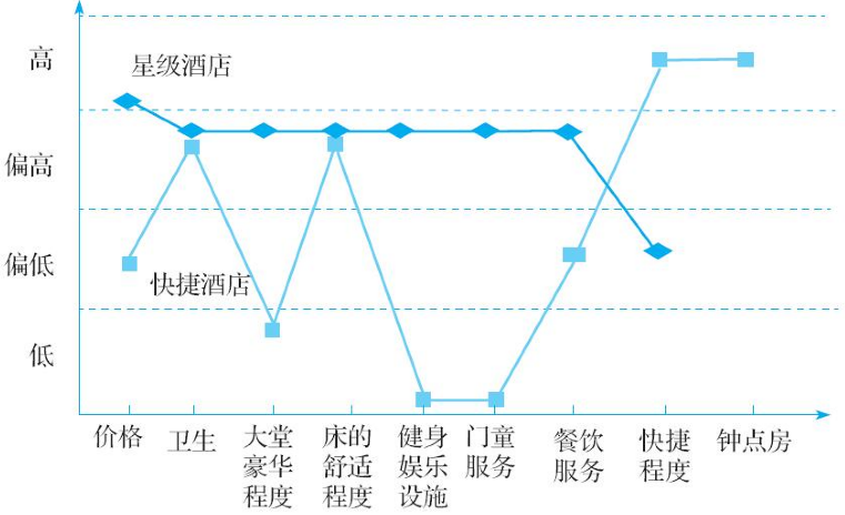 战略画布可以帮助制定“蓝海战略”开辟未开发的市场,进行产品差异化创新。案例:以产品的竞争元素作为横坐标绘制价值曲线。