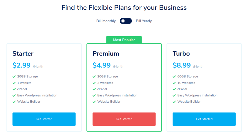 总共有3个套餐,可以按年或者按月购买,按年购买会更便宜。购买过程非常简单,选择对应套餐点击Get Started。
