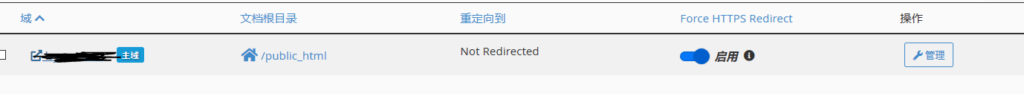 在cpanel面板的:域-域选项找到自己的域名,选择启用Force HTTPS Redirect,至此,网站即可安全的用HTTPS进行访问了。